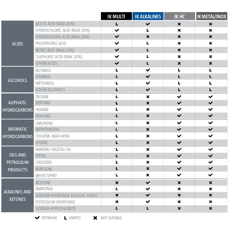 De IK Multi 9 van Matabi is een professionele drukspuit die lang mee zal gaan en geschikt is voor alle bestrijdingsmiddelen. De onderdelen bieden namelijk een maximale weerstand tegen verschillende soorten chemicaliën. Alle verbindingen zijn van vitron. De IK Multi 9 wordt geleverd met 2 slangen en een extra sproeikopje. De drukspuit heeft een werkdruk van 3 bar.